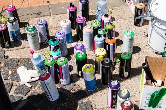 One of the finest talents for photo-realism at this festival is SMUG ONE, born in Australia now living in Glasgow, Scotland. Smug keeps it local with his Port Adelaide piece featuring a Farmers Union Iced Coffee and a fishing rod.