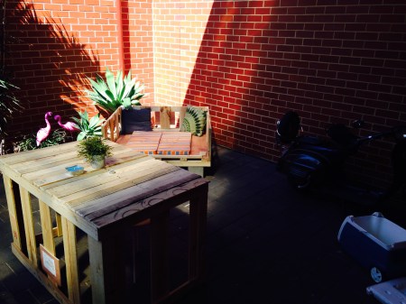 There’s really not many things you can’t make from old timber pallets, you are only limited by the depth of your imagination and not the depth of your pockets. The timber used for pallets varies so choose the quality to suit the desired purpose. This is a new hobby that my house-mate and I have personally journeyed on when we had to replace our outdoor furniture on a shoe-string budget and we’ve had a lot of fun with it.